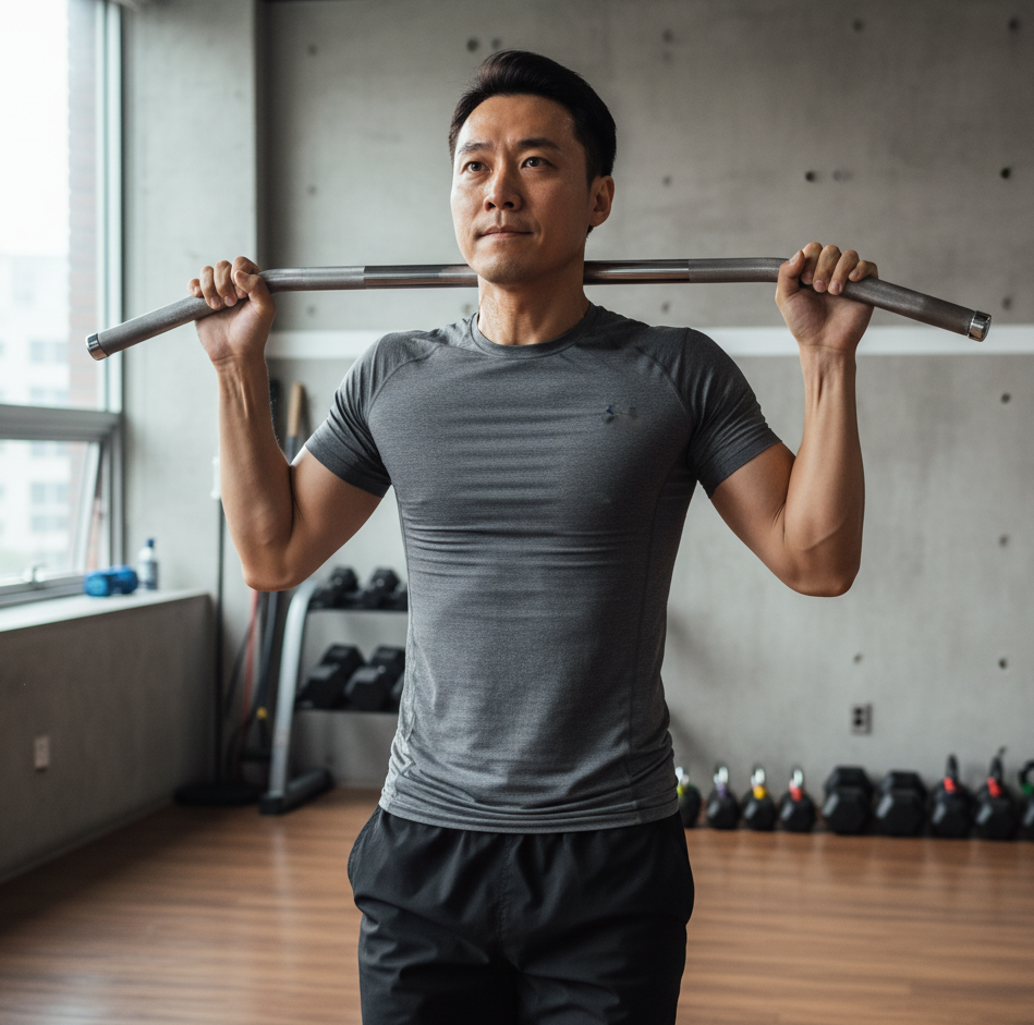 초보자라면 철봉에 대한 두려움이 크기 때문에 단계별 접근이 필요합니다. 먼저 ‘어깨 스트레칭 → 벽 붙여서 매달리기 → 철봉 데드행’ 순서로 진행하면 부상 위험을 줄일 수 있습니다.
