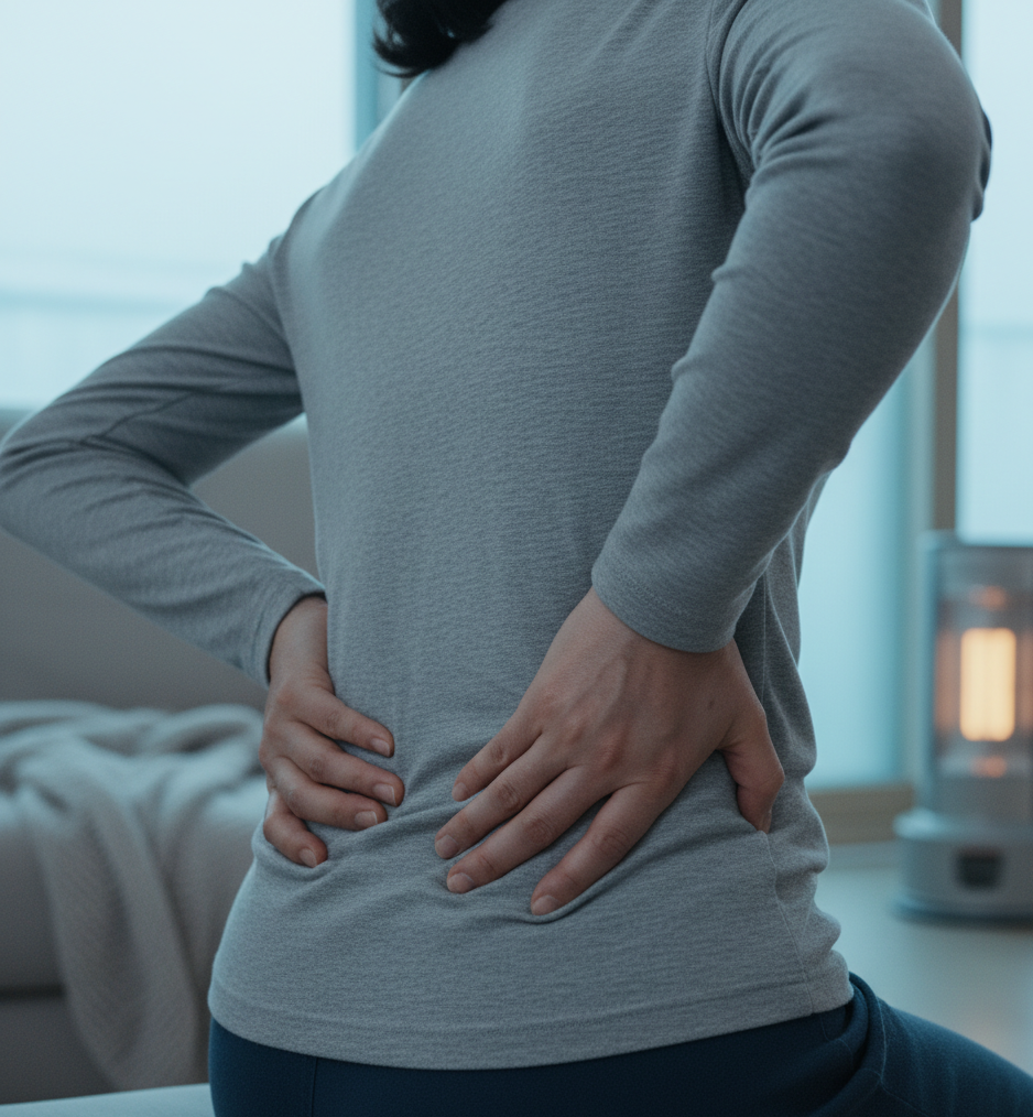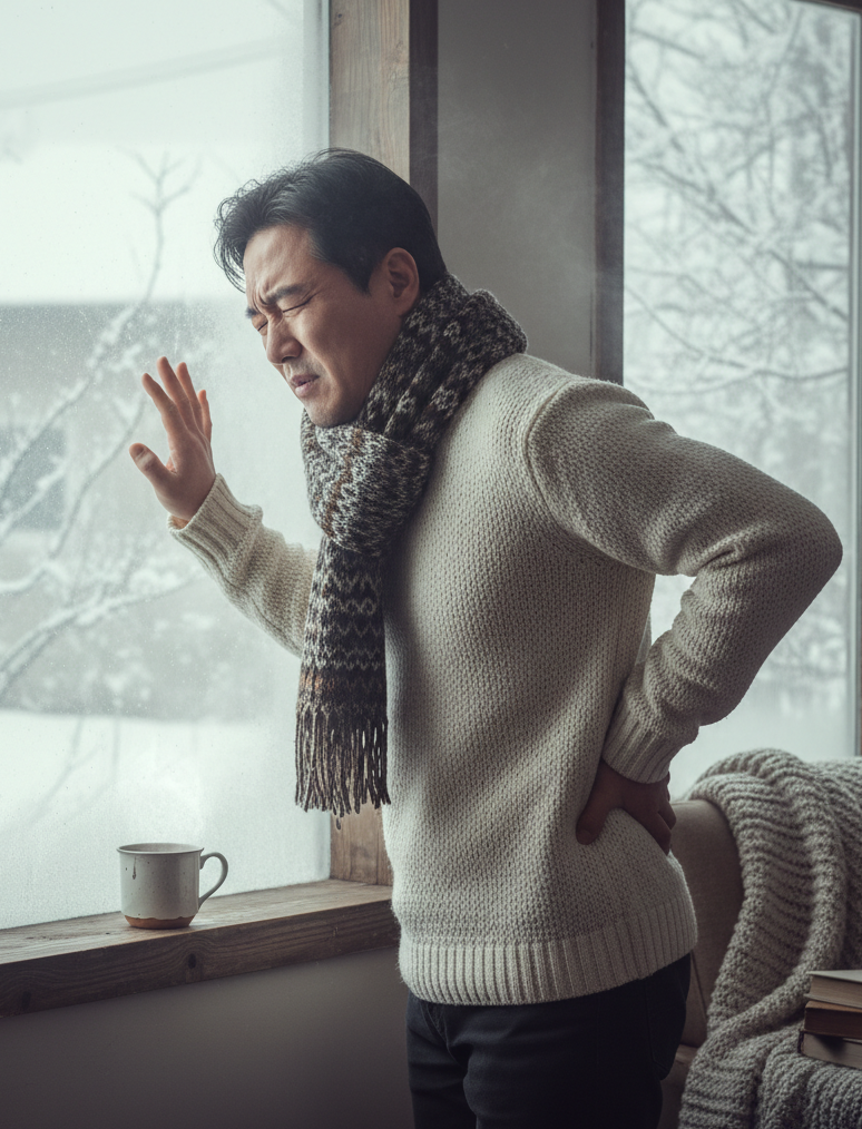 요약하자면, 추운 날씨에는 혈류 감소 → 근육 경직 → 디스크 압박 증가 → 신경 통증 악화의 순환이 발생합니다. 따라서 단순한 체온 유지뿐 아니라, 근육의 유연성과 혈류 순환을 위한 사전 관리가 필수적입니다.