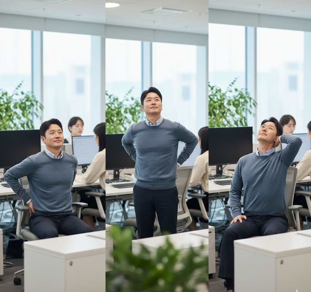 신전 루틴은 ‘짧지만 자주’ 하는 것이 중요합니다. 전문가들은 한 번에 오래 하기보다, 근무 중 틈틈이 반복적으로 실천하는 것을 권장합니다.