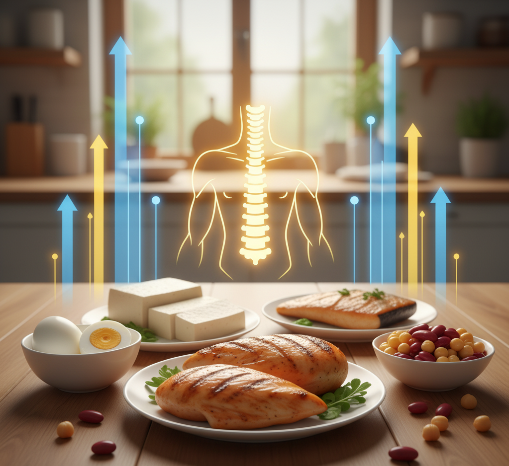 허리를 지탱하는 구조물은 단순히 뼈만이 아닙니다. 척추 주변을 감싸고 있는 근육이 탄탄해야만 허리에 가해지는 부담을 분산시킬 수 있고, 일상적인 움직임에서도 허리에 무리가 덜 갑니다. 단백질은 이러한 근육을 형성하고 유지하는 데 필수적인 영양소입니다.