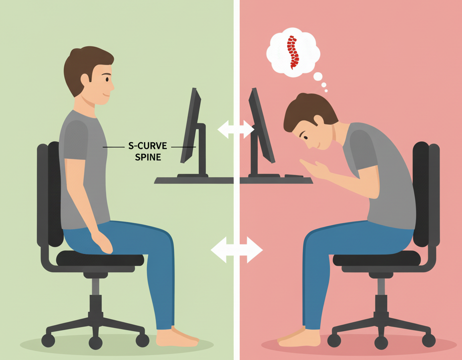 자세 교정의 첫 단계는 골반 정렬 유지입니다. 앉을 때는 엉덩이를 등받이에 붙이고, 허리를 C자형이 아닌 S자 곡선을 유지해야 합니다. 또한 의자의 높이는 무릎이 엉덩이보다 약간 낮은 위치가 적절합니다. ‘Dynamic Sitting’ 개념도 최근 재활학계에서 주목받고 있습니다. 이는 장시간 고정자세를 피하고, 30분마다 체중 중심을 바꾸는 방식입니다(Harvard Health Publishing, 2023). 이 방법은 디스크 압박을 약 15~20% 완화시킨다는 연구 결과가 있습니다.